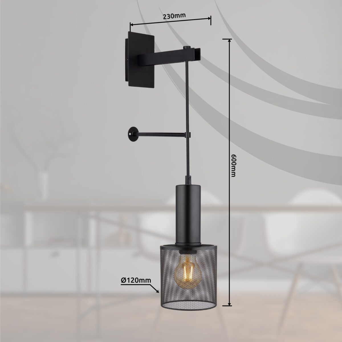 Ova zidna lampa iz serije JEDD izrađena je od crnog mat metala i crne metalne pletenice i ima preklopni prekidač na kablu i emituje svetlo prema dole. Priključni kabel je uključen u pakovanje, a lampa se može spojiti direktno ili pomoću utikača. Dimenzije su 120 x 600 mm (širina x visina) sa ovjesom od 230 mm i dužinom kabla od 1500 mm. E27 utičnica vam omogućava da sami odredite boju svjetla i svjetlinu do maksimalne snage od 60 vati. Zbog dugovečnosti i uštede energije preporučujemo LED sijalice.