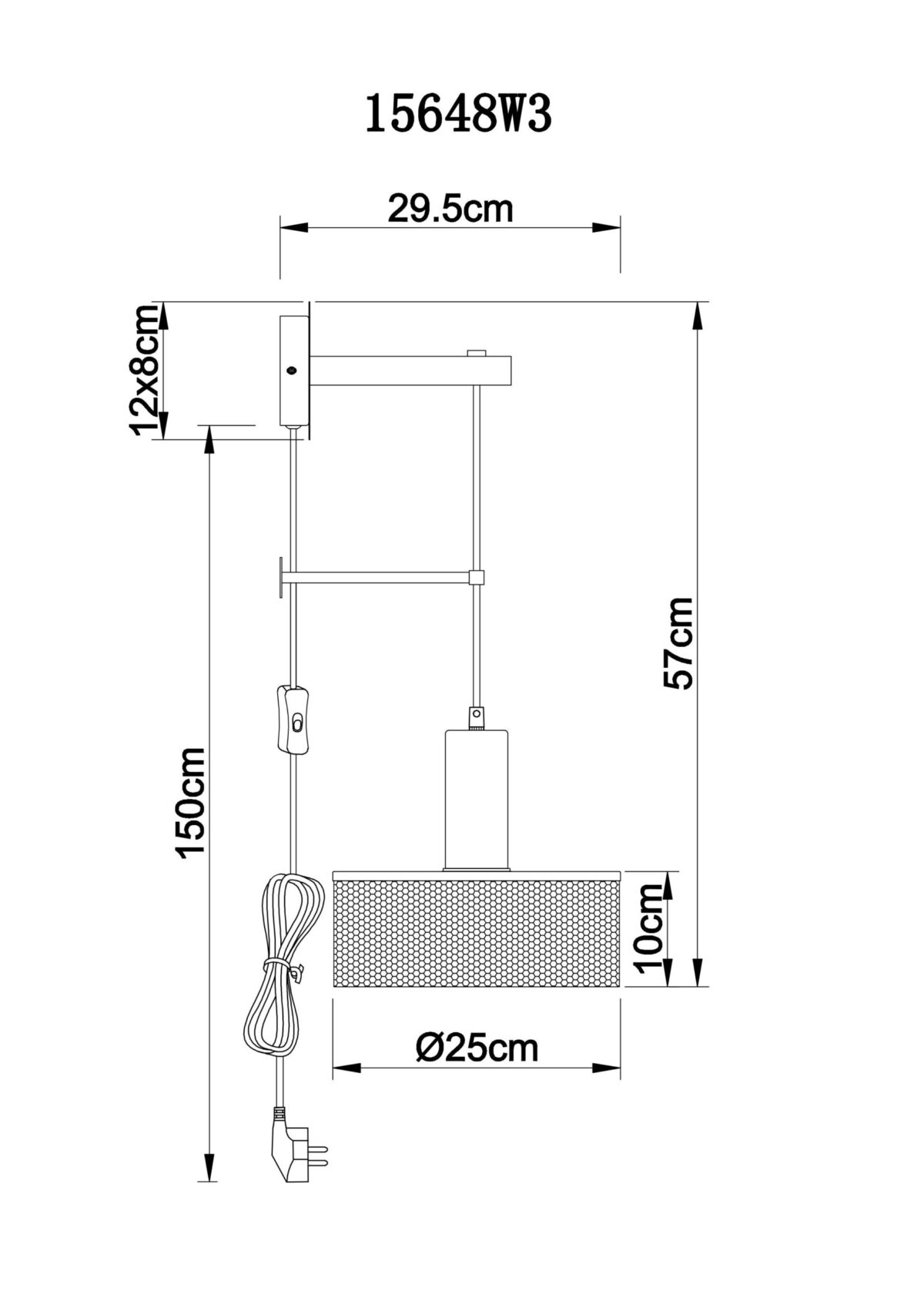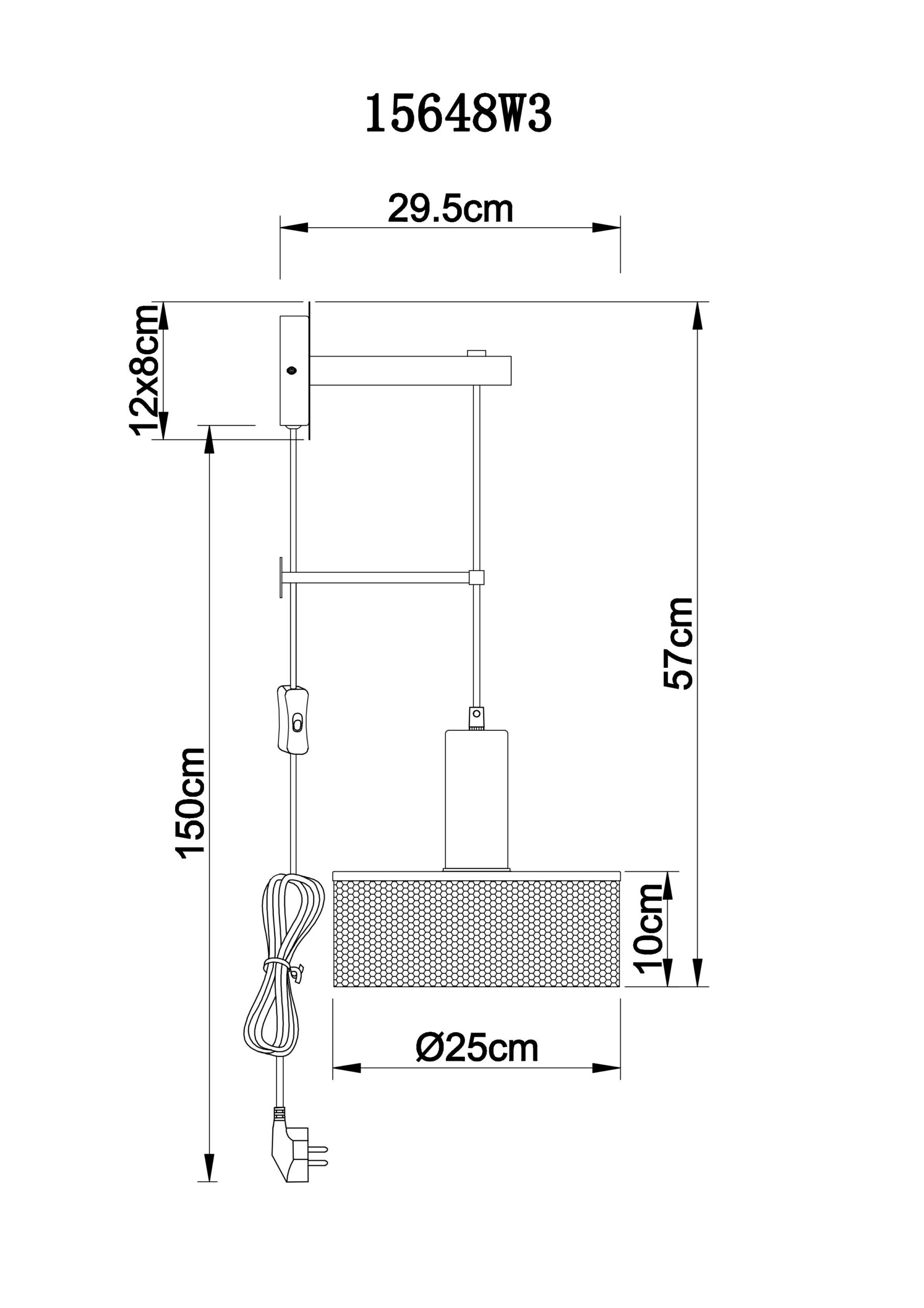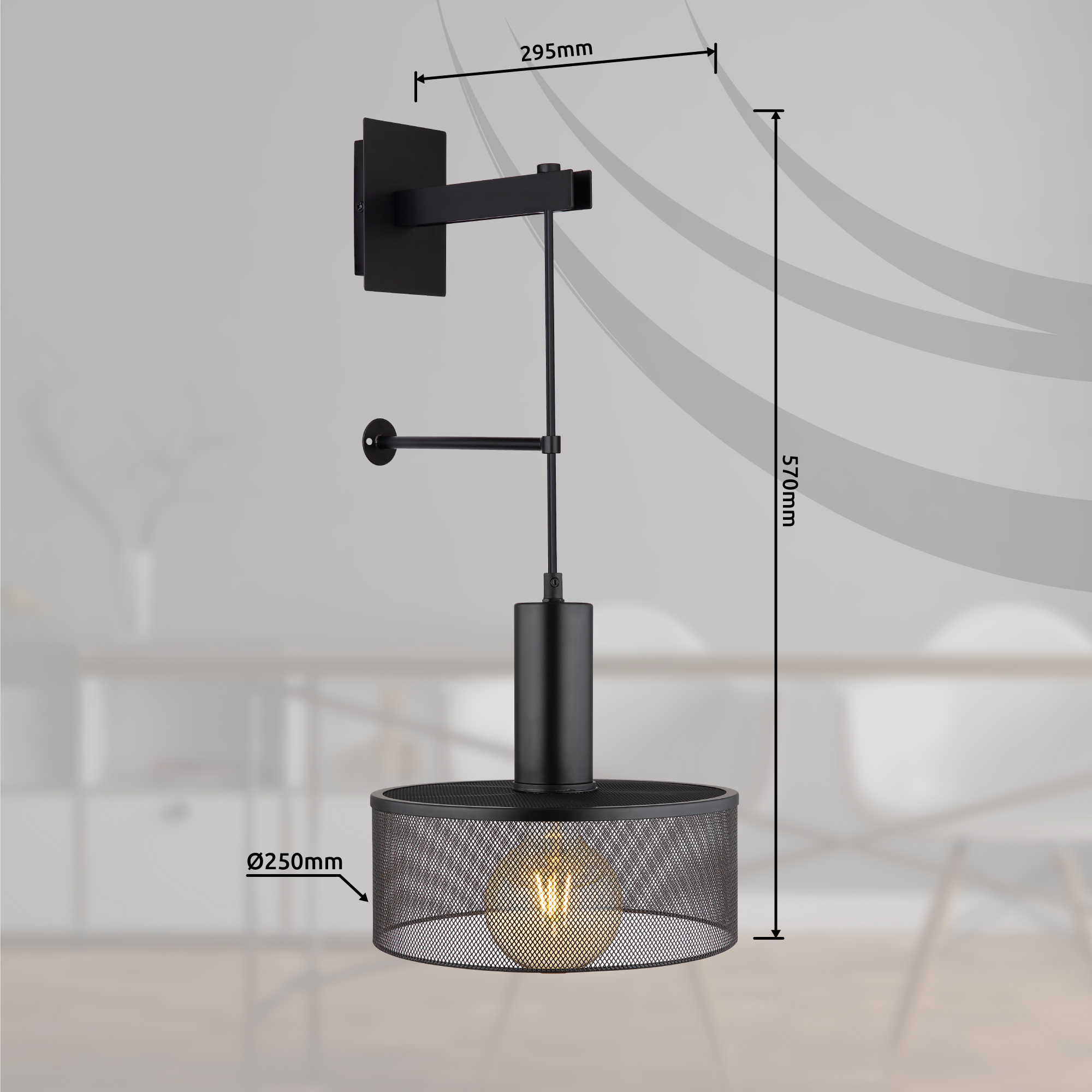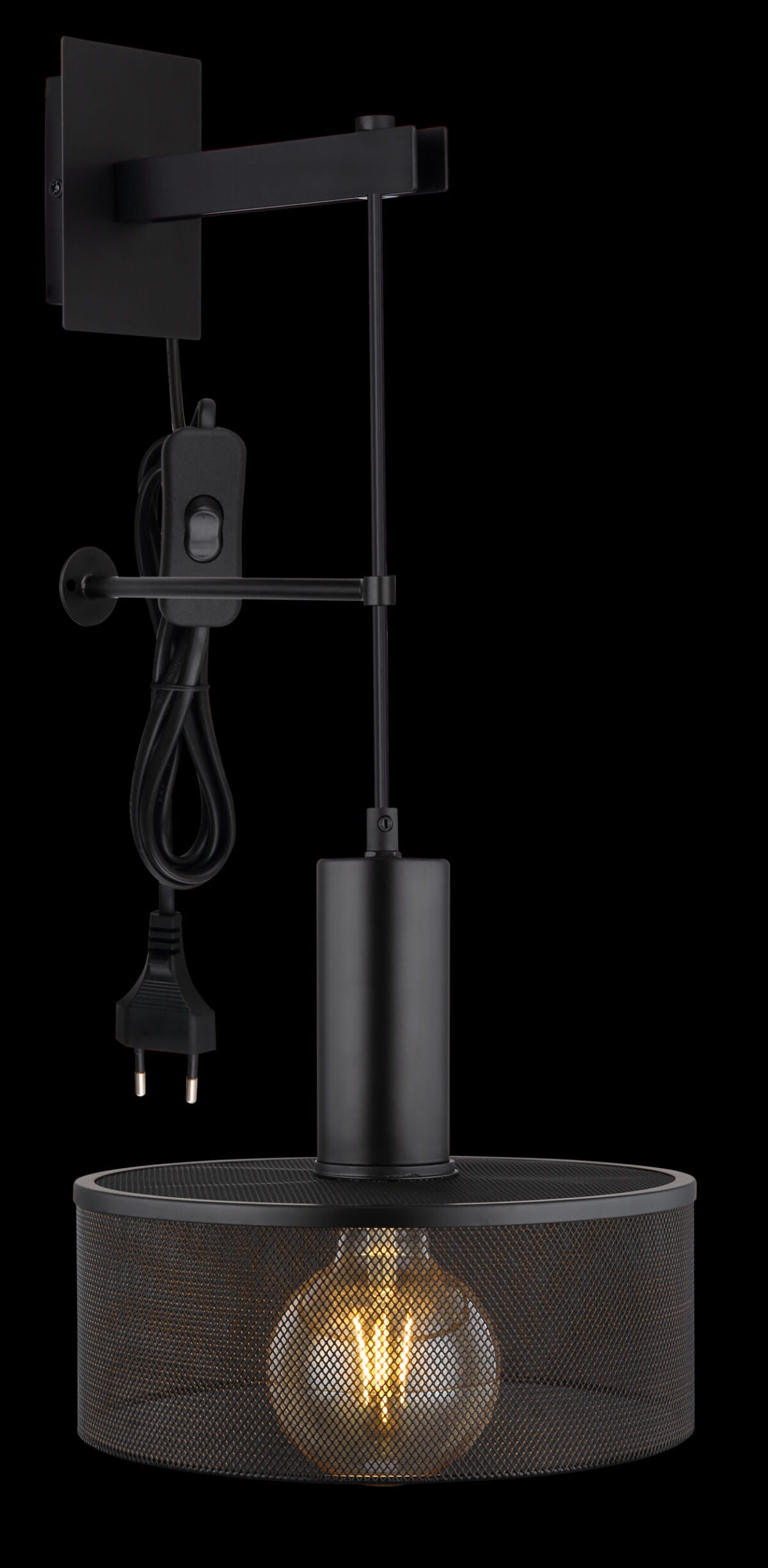 Ova zidna lampa iz serije JEDD izrađena je od crnog mat metala i crne metalne pletenice i ima preklopni prekidač na kablu i emituje svetlo prema dole. Priključni kabel je uključen u pakovanje, a lampa se može spojiti direktno ili pomoću utikača. Dimenzije su 250 x 570 mm (širina x visina) sa ovjesom od 295 mm i dužinom kabla od 1500 mm. E27 utičnica vam omogućava da sami odredite boju svjetla i svjetlinu do maksimalne snage od 60 vati. Zbog dugovečnosti i uštede energije preporučujemo LED sijalice.