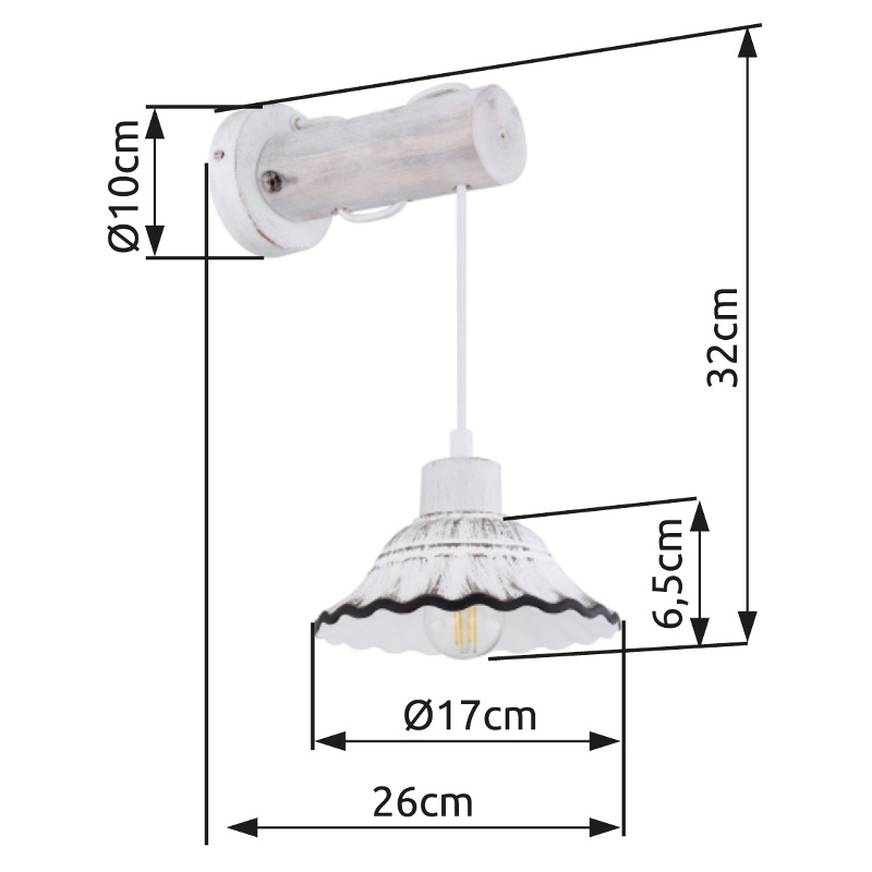 Ova zidna lampa iz serije Jowita impresionira svojim jednostavnim dizajnom od bijelog metala i keramike. Zidna lampa veličine 32 cm ima cilindrični, bijeli komad drveta, koji je prošaran kablom. Uključujući senku, strši 26 cm od zida. Uz to, elegantna abažura (ø 17 cm) može biti opremljena E27 sijalicom po vašem izboru. Ovo vam daje priliku da odredite boju svjetla i svjetlinu prema vašim idejama. S nekoliko artikala iz serije Jowita možete upotpuniti cjelokupnu sliku vašeg interijera.