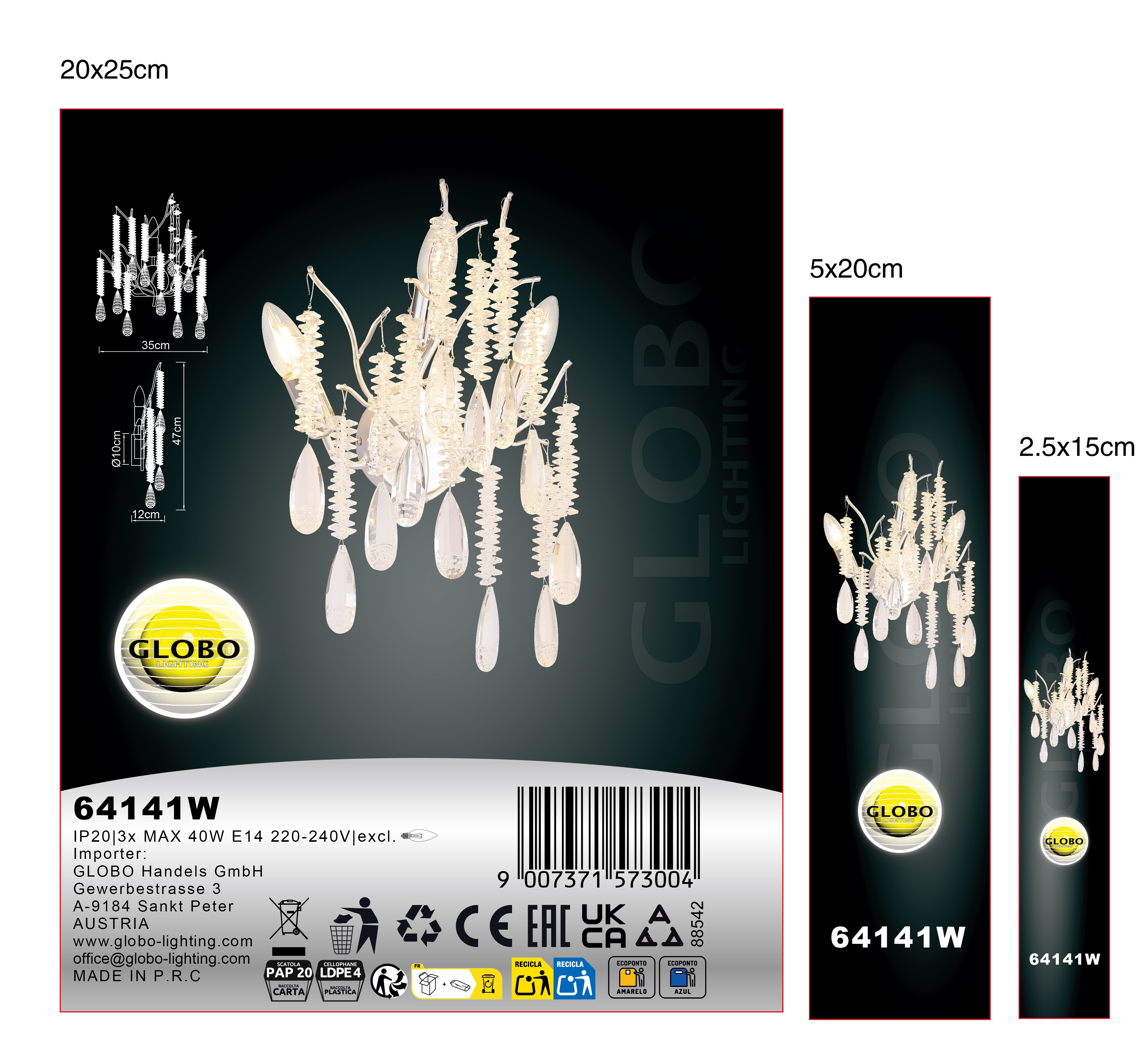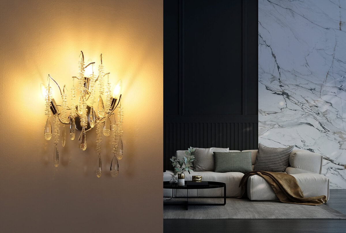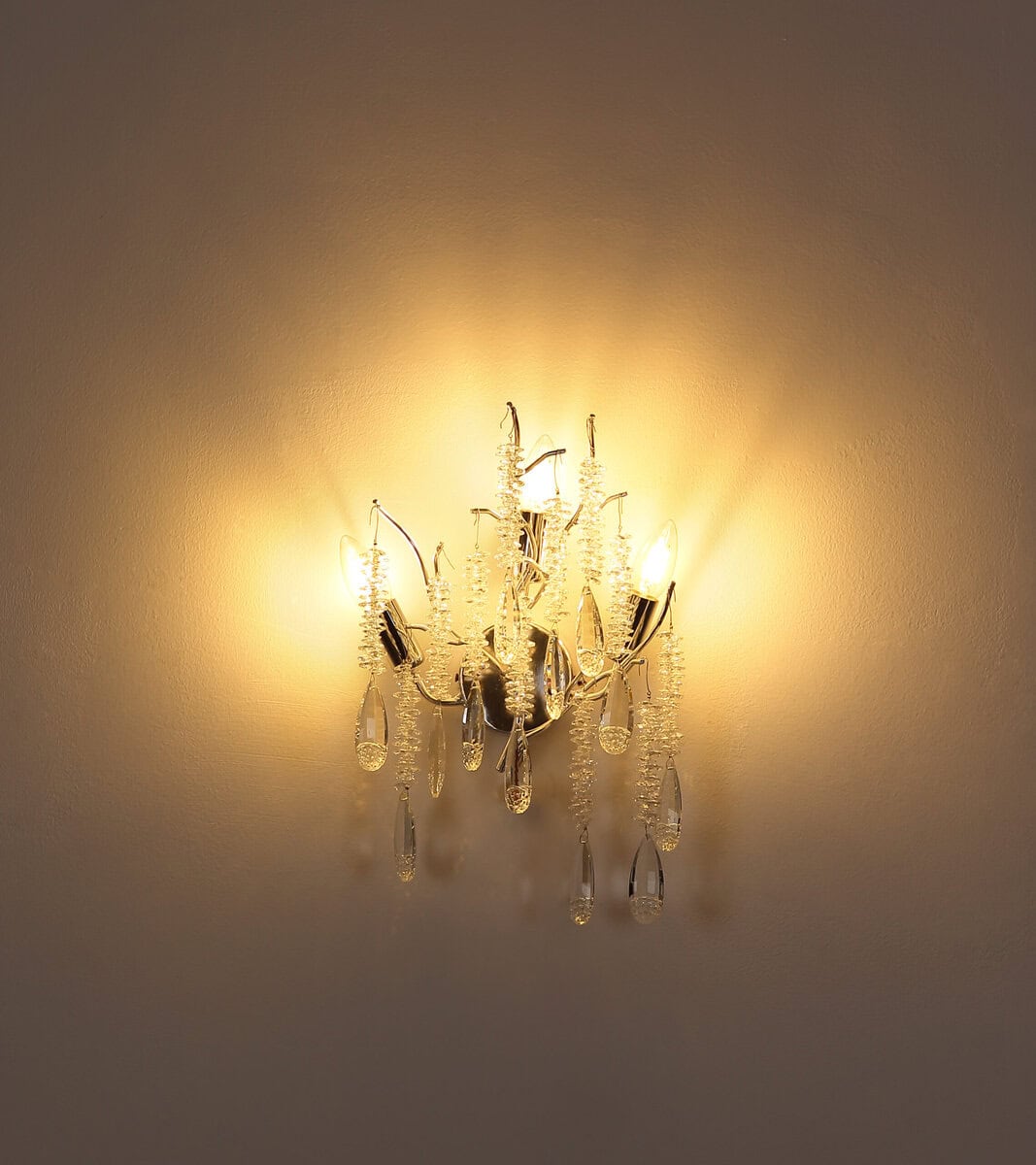 Zidna lampa KINGA impresionira svojim pravougaonim dizajnom i delikatnim kristalnim ukrasima, dodajući elegantan štih svakoj prostoriji. Mat metalni okvir srebrne boje stvara moderan kontrast sa kristalima od prozirnog stakla, koji meko raspršuju svjetlost i stvaraju ugodnu atmosferu. Sa širinom od 350 mm i projekcijom od 120 mm, KINGA se graciozno uklapa u različite životne prostore — od hodnika do dnevnih soba. E14 grlo (sijalica nije uključena) omogućava fleksibilan izbor izvora svjetlosti u zavisnosti od željene svjetline i temperature boje. Zahvaljujući visokokvalitetnoj izradi i promišljenom dizajnu, KINGA nije samo funkcionalan izvor svjetlosti već i dekorativni element koji skladno spaja luksuz i moderan dizajn.