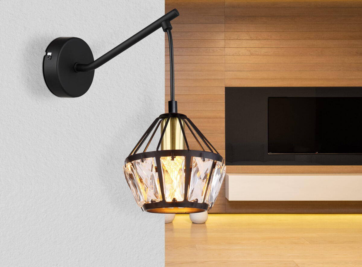 Ova sjajna zidna lampa serije LOIS inspiriše modernim dizajnom. Iz okrugle zidne osnove, crna metalna šipka viri do E14 utičnice sa prepustom od 23 cm. Ovo je opremljeno staklenim kristalnim sjenilom i daje vam mogućnost da sami odredite boju svjetla i svjetlinu do maksimalne snage od 40 vati. Zbog dugovečnosti i uštede energije preporučujemo LED sijalice.