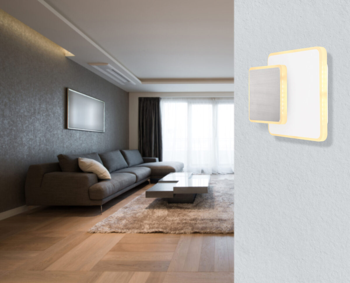 Ova moderna zidna lampa iz serije Many (20×17 cm) predivno se uklapa u ambijent različitih stilova stanovanja zahvaljujući jednostavnom dizajnu od bijelog i nikl-mat metala. Sastoji se od dva metalna kvadrata različitih veličina, koji su raspoređeni jedan iznad drugog i svaki uokviren opalnim akrilnim prstenom sa LED lampama. Uključene LED sijalice daju 808 lumena jakog svetla sa prijatnom bojom svetla od 3000 Kelvina (topla bela). Uz više artikala iz iste serije, možete upotpuniti cjelokupnu sliku vašeg interijera.