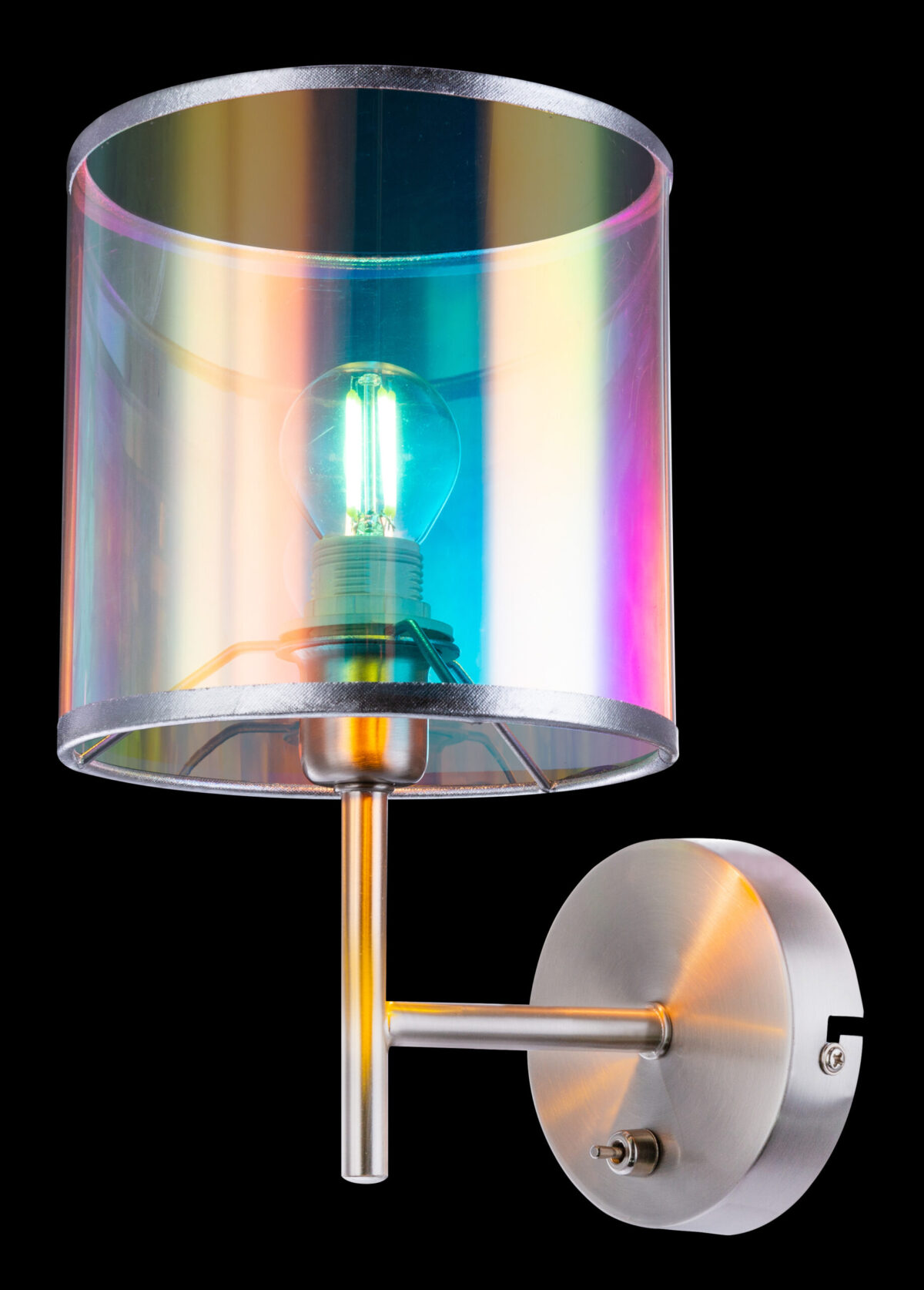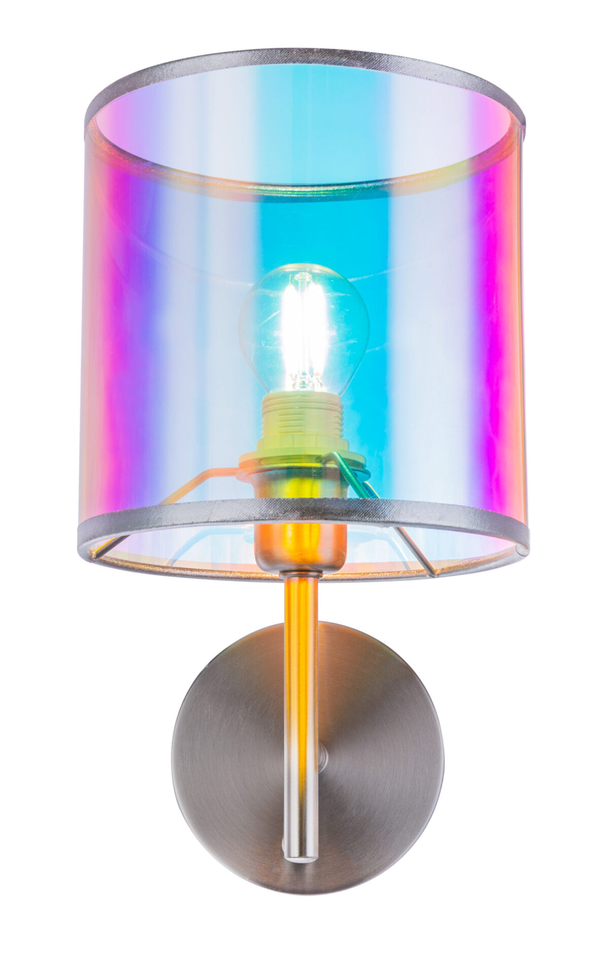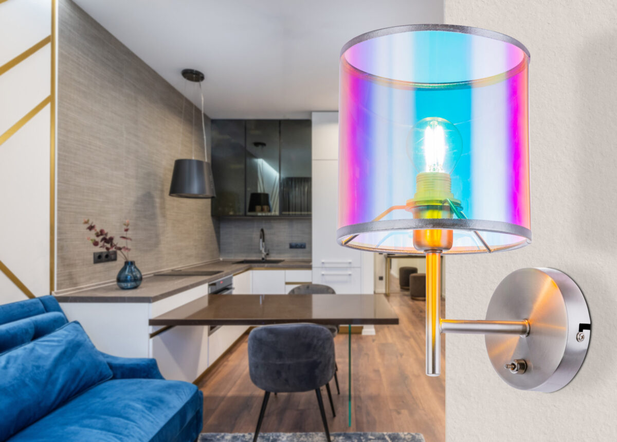Šarena zidna lampa serije MELANIE baca novo svjetlo u vašu sobu. Apsolutni vrhunac je trendi, višebojni tekstilni abažur (Ø15cm). Ova nikl-mat lampa visine 26 cm ima prekidač za uključivanje/isključivanje. Opremljena je sa E14 grlom i na taj način vam omogućava da koristite sijalicu po vašem izboru (maks. 40 vati). Preporučujemo LED lampe zbog njihove uštede energije i dugovečnosti. Sa daljim modelima ove serije možete dodatno ulepšati sliku svog životnog prostora.