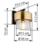 Ova zidna lampa uvjerava svojim estetskim dizajnom od crno-mat metala i dimljenog stakla. Zidna lampa od 21,5 cm sastoji se od pravougaone metalne ploče iz koje viri ugaona metalna šipka. Na ovo je pričvršćena cilindrična, zadimljena staklena sjenila sa mesinganim prstenom (ø 18 cm), koja se može opremiti sa E27 sijalicom po vašem izboru. Ovo vam daje priliku da odredite boju svjetla i svjetlinu prema vašim idejama. Uz više artikala iz iste serije, možete stvoriti elegantnu atmosferu u svom interijeru i upotpuniti cjelokupnu sliku.