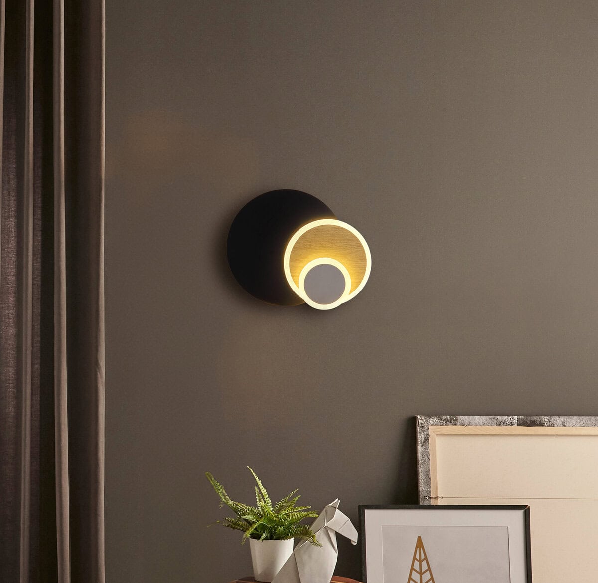 Zidna lampa ODONELL METAL BLACK MATT 1XLED kombinuje moderan dizajn sa uzbudljivim kontrastima materijala. Tri pomično postavljena prstena čine upečatljiv dizajn ove pravokutne lampe i daju individualne svjetlosne akcente na zidu. Kućište je izrađeno od visokokvalitetnog metala u mat crnoj boji, upotpunjeno stilskim elementima u izgledu tamnog drveta i mat antracitom – harmonična kombinacija za savremene interijere. Opalni akrilni sjenilo osigurava ravnomjernu distribuciju svjetlosti i daje prostoriji ugodno toplo bijelo svjetlo od 3000 K. Sa svjetlosnim izlazom od 1490 lumena, integrirana LED tehnologija nudi snažno osvjetljenje uz visoku energetsku efikasnost u isto vrijeme. Zidna lampa ODONELL idealna je za dnevne sobe, hodnike ili kao stilski akcenat u spavaćoj sobi. Kombinira funkciju sa estetikom i pruža moderne svjetlosne impulse na svakom zidu. Pravi vrhunac za ljubitelje izvanrednih svjetlosnih rješenja.