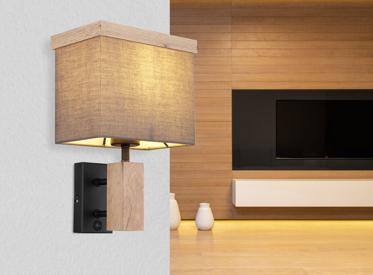 Ova jednostavna zidna lampa uvjerava sjajnim bojama. Od pravougaonog okvira u sjajnom izgledu drveta izlazi kvadratna tekstilna nijansa u prekrasnom antracitu (40x40cm). U sredini se nalazi E27 LED utičnica koja vam omogućava da odredite boju svjetla i svjetlinu do maksimalno 9 vati.