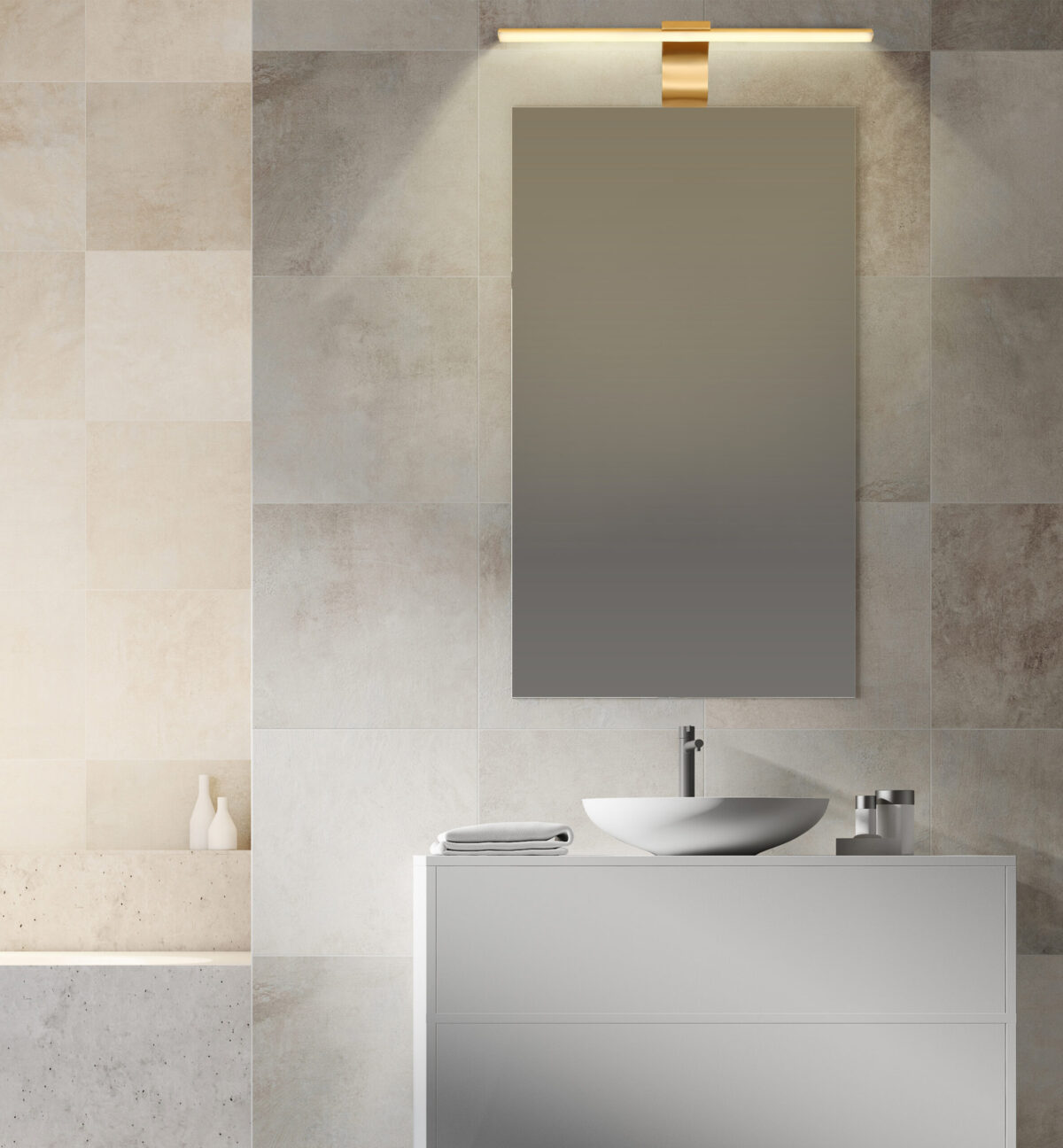Ova moderna zidna lampa idealna je za svaku vašu sobu. Iz metalnog pričvršćivača u zlatnoj boji za zid strši sa prepustom od 15 cm LED panel dužine 61 cm, koji emituje neutralno svjetlo od 4000 Kelvina. Stepen zaštite IP44 koristi se za zaštitu od prskanja vode.