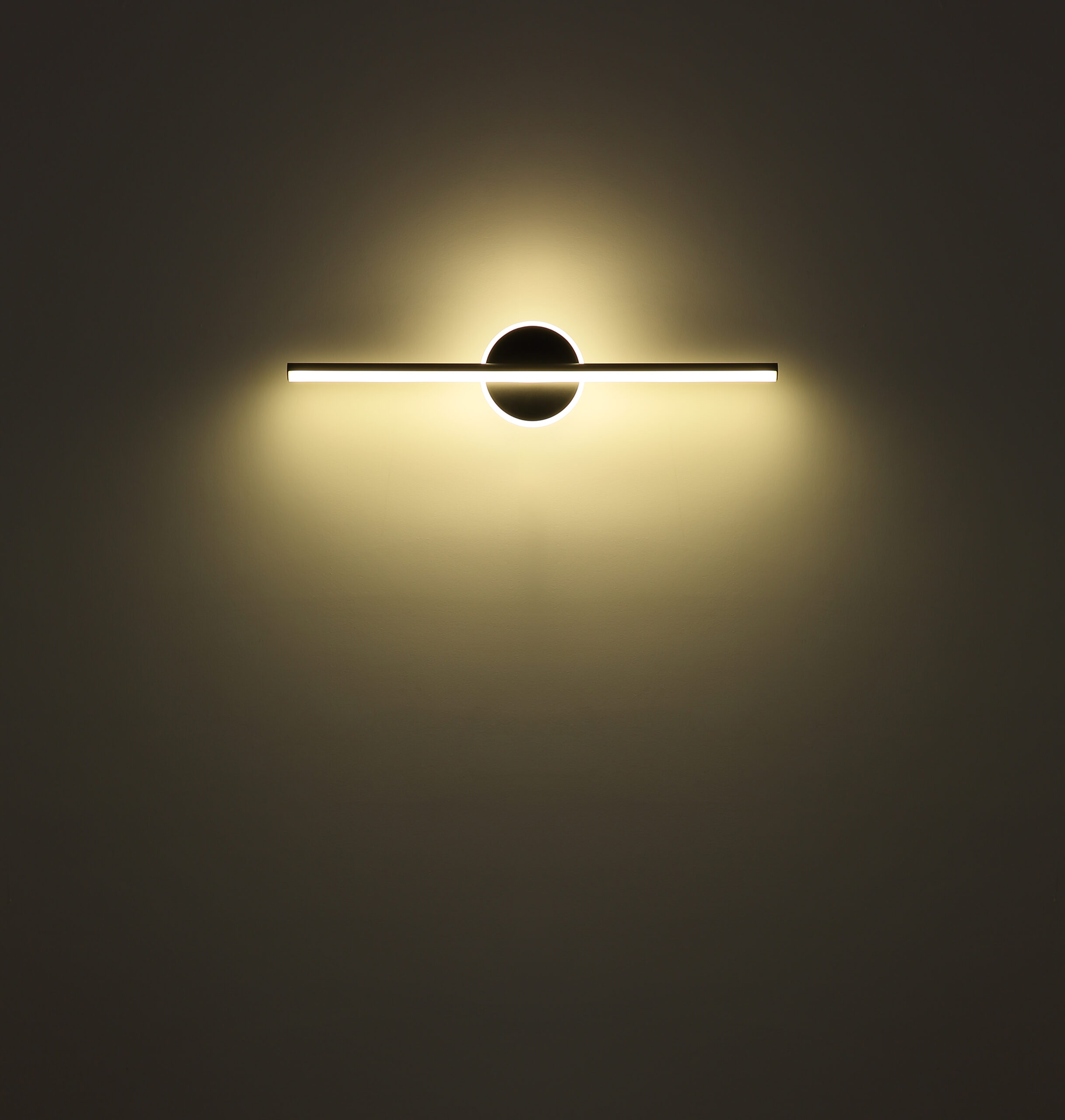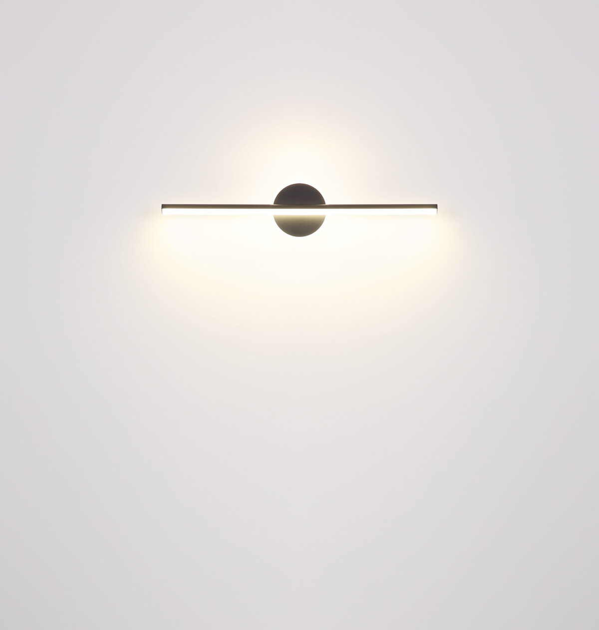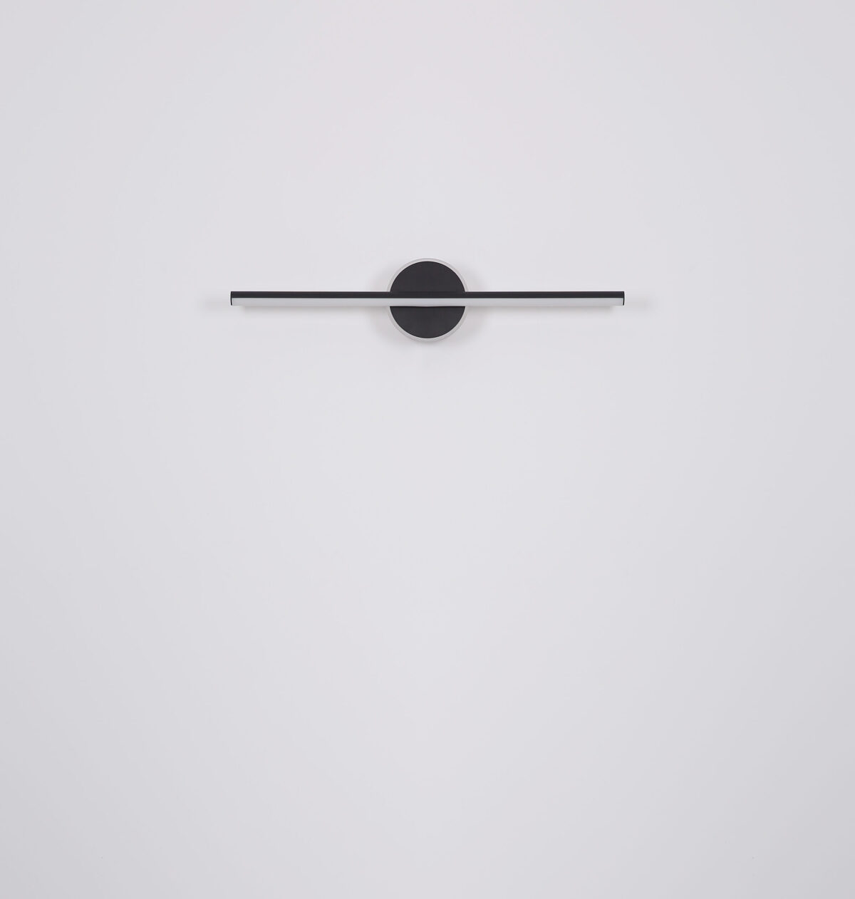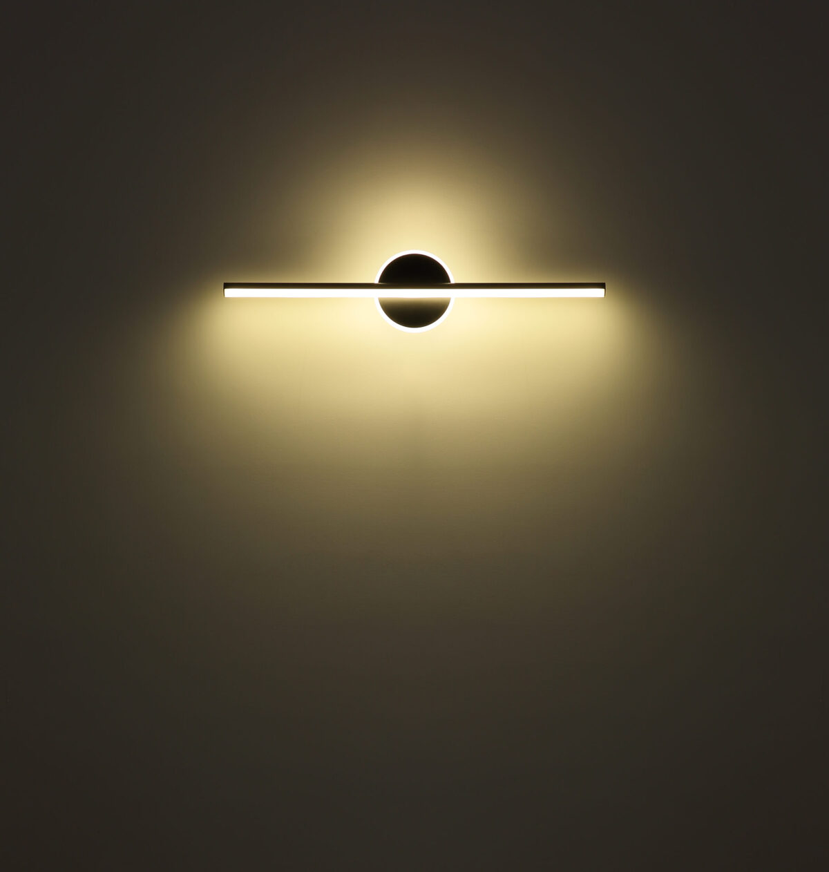 Ova moderna zidna lampa idealna je za svaku vašu sobu. Iz crnog okruglog metalnog nastavka za zid viri sa prepustom od 74 cm okrugli LED panel na kojem se nalazi LED panel dužine 61 cm. Oni pružaju neutralno svjetlo od 4000 Kelvina i imaju stepen zaštite IP44 od prskanja vode.