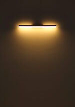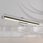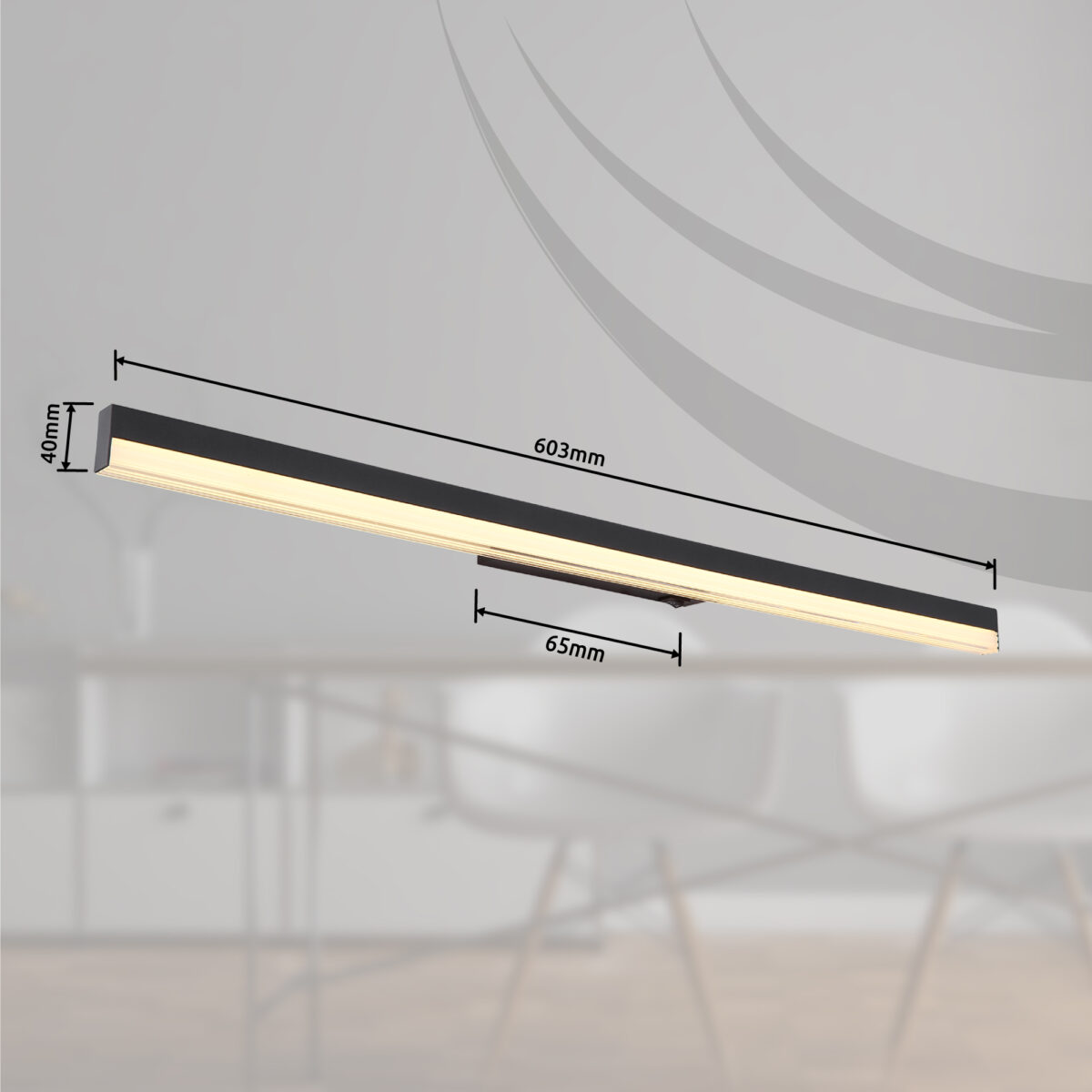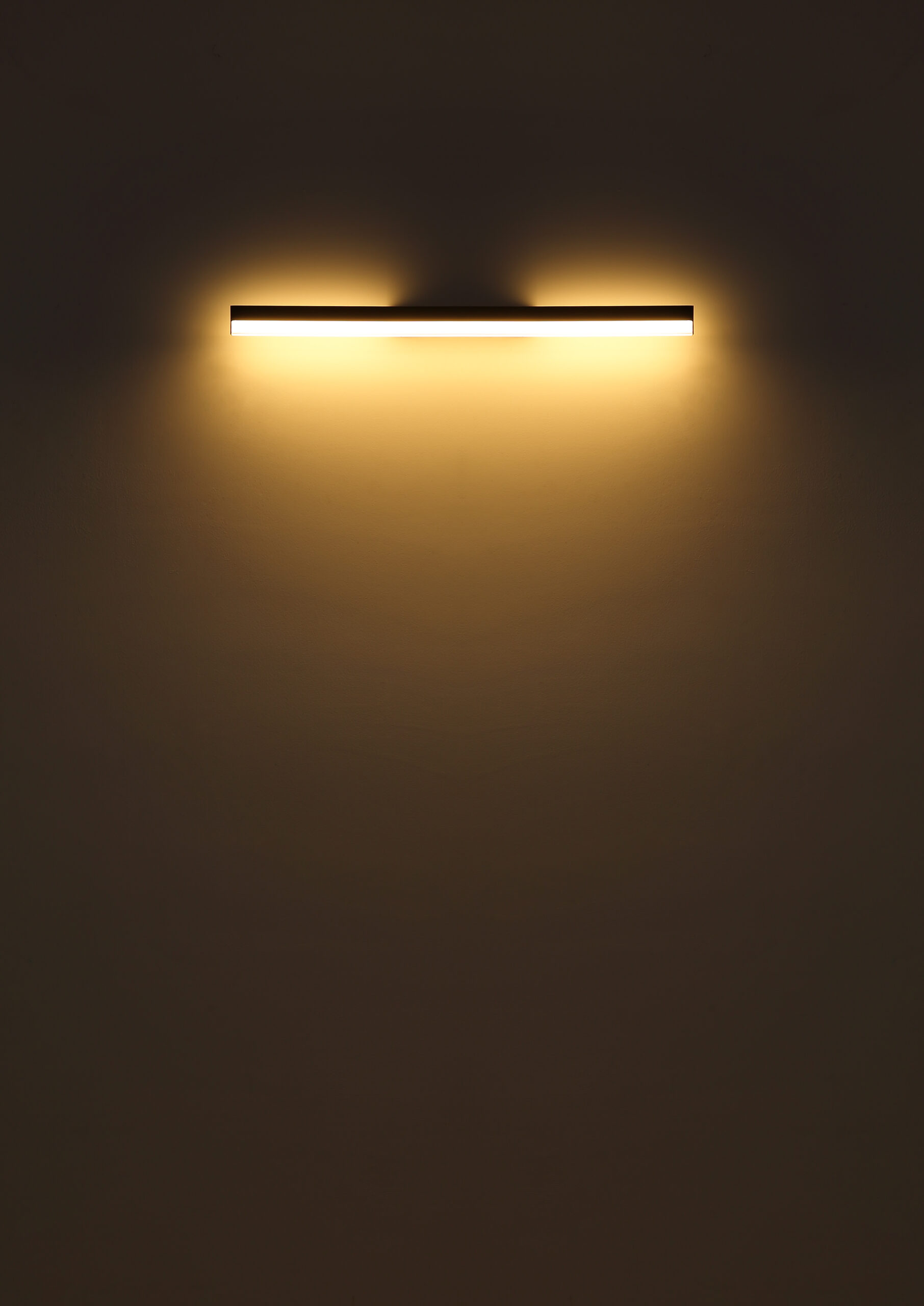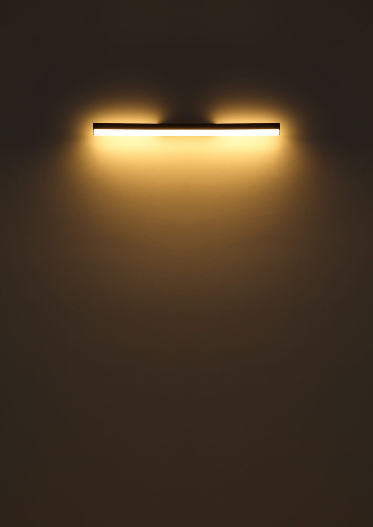 Zidna lampa je izrađena od crnog mat metala i crnog mat aluminijuma kao i opal akrila, koji je raspoređen u prečniku 800 mm x 40 mm x 65 mm (dužina x širina x visina). Svetiljka se isporučuje sa LED sijalicom snage 18 W i naponom od 230 V. Izvor svjetlosti ima svjetlinu od 2200 lm izvora i izlaznu snagu od 800 lm pri temperaturi boje 3000/6000K. Ova zidna lampa je prava privlačnost za oči i idealna je za moderne životne prostore. Sa LED lampom štedite energiju i štitite životnu sredinu. Zidna lampa je opremljena preklopnim prekidačem na predmetu i prekidačem za individualno podešavanje svjetline. Boje se mogu popraviti i mogu se mijenjati između 3000K ili 6000K.