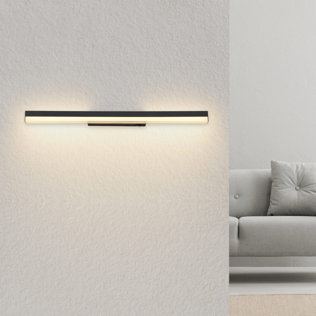 Zidna lampa SALLO u elegantnoj mat crnoj boji kombinuje moderan dizajn sa praktičnom funkcionalnošću. Napravljen od visokokvalitetnog aluminijuma i metala u mat crnoj boji, savršeno se uklapa u savremene životne prostore. Opalno bijeli akrilni poklopac osigurava ravnomjernu distribuciju svjetlosti. Sa praktičnim prekidačem koji se nalazi direktno na proizvodu, lampa je jednostavna za rukovanje. Integrirani stepenasti prekidač vam omogućava da odaberete između toplog bijelog svjetla (3000K) i dnevnog bijelog svjetla (6000K) kako biste prilagodili atmosferu u prostoriji. Poseban naglasak: odabrana temperatura boje može se fiksirati. Kompaktan dizajn sa dimenzijama 600x40mm i projekcijom od 60mm čini zidnu lampu SALLO raznovrsnom. Integrisani LED sa 12W na 230V obezbeđuje izvor od 1400lm i izlaz od 500lm, obezbeđujući prijatno osvetljenje bez odsjaja. Ova zidna lampa kombinuje funkcionalnost i estetiku na najvišem nivou.