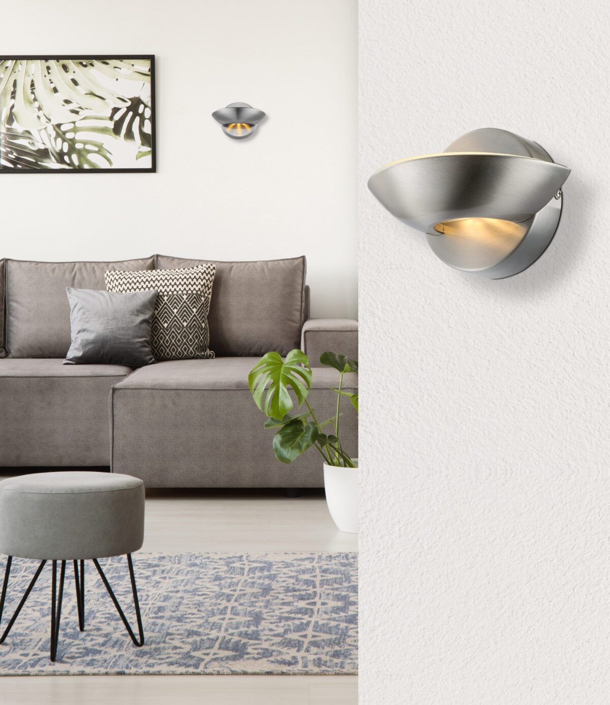 Ovu prvoklasnu zidnu lampu, iz serije Sammy, odlikuje jednostavan i okrugao dizajn. U proizvodnji ove unutrašnje lampe odabrana je boja nikl mat i prekrasno staklo za pokrivanje sijalica. Tačka ima sposobnost da sija gore i dole. Dve LED sijalice sa jednom 3 i jednom 4,5 W obezbeđuju pravu osvetljenost, boja svetla od 3000K se percipira kao prijatna topla bela i 510 lumena ukupnog intenziteta svetlosti je savršeno usklađeno. Ovaj model je dostupan iu drugim bojama.