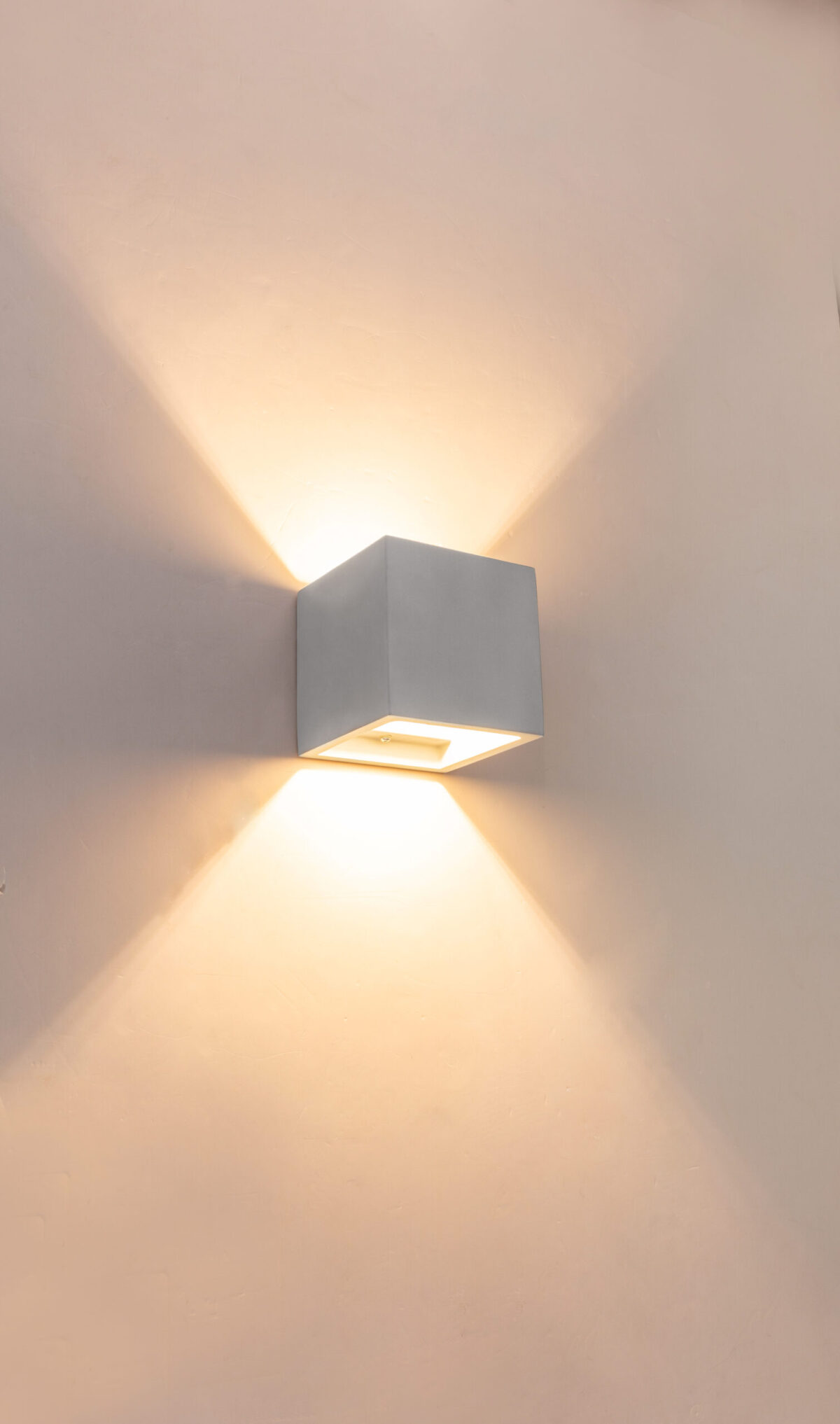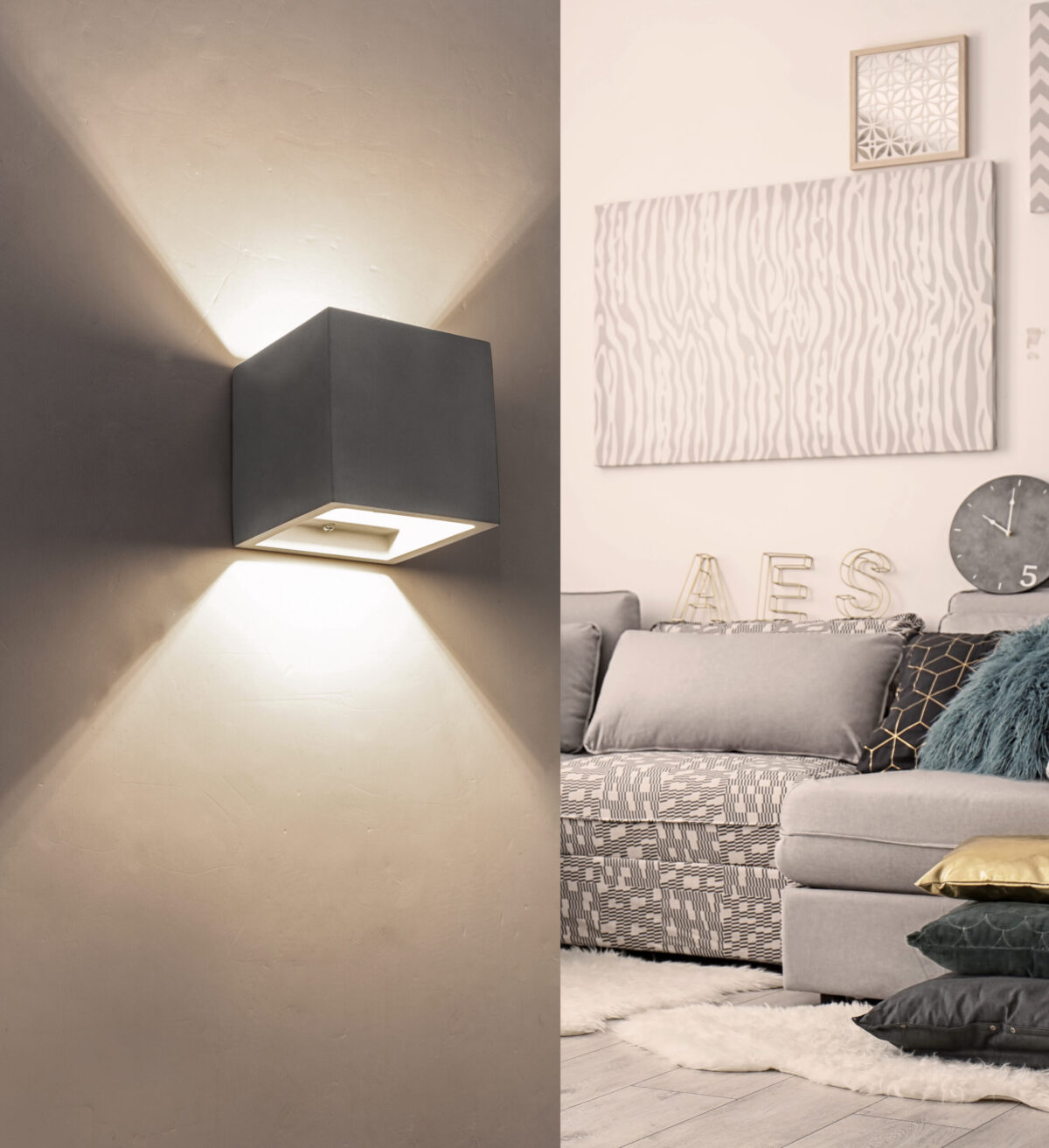 Moderna zidna lampa TIMO jasno ističe svojim privlačnim dizajnom. Ovaj ekskluzivni model uklapa se u različite prostorije zbog svog sjajnog, ali jednostavnog dizajna. Kvadratna (11,5 cm x 11,5 cm) zidna lampa u betonskoj optici ima G9 grlo, što vam ostavlja izbor izvora svjetlosti, a time i intenziteta svjetlosti (maks. 40W) i boje svjetla. Dodatna karakteristika ove svetiljke je da svetli gore i dole.