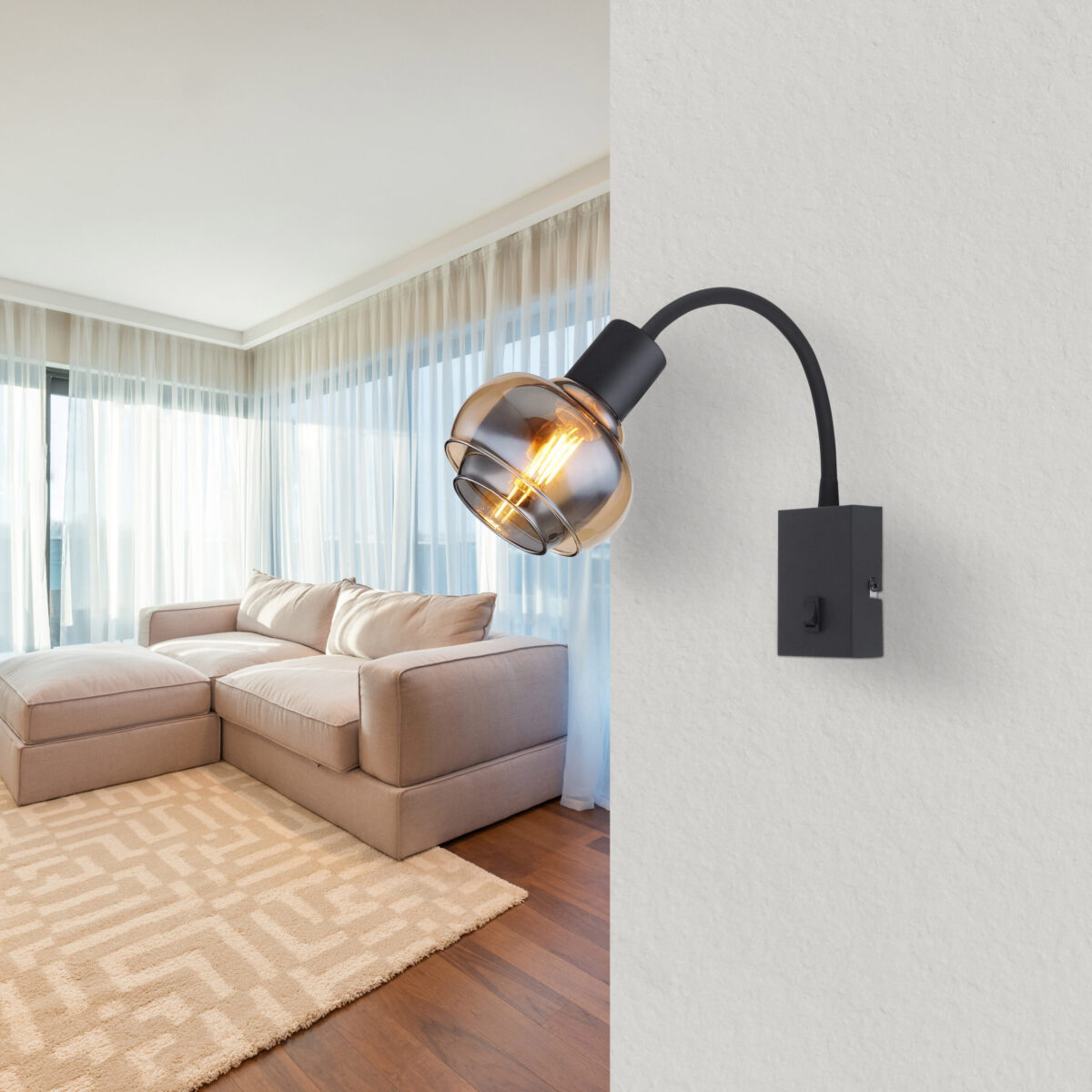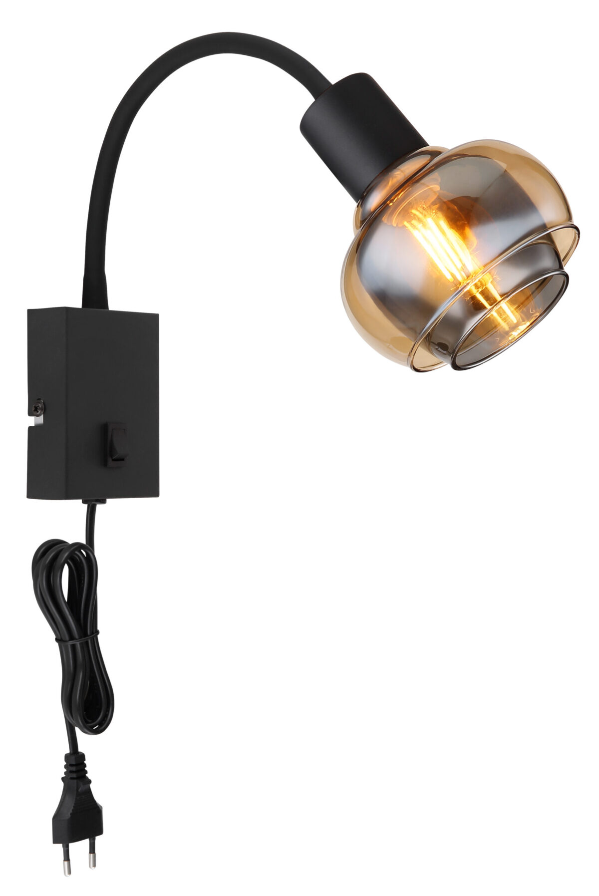 Naša zidna lampa je izrađena od crnog mat lakiranog metala i prozirnog stakla u jantarnim i dimnim bojama koje lijepo reflektiraju svjetlost. Silikon je crni mat. Lampa je opremljena preklopnim prekidačem na artiklu i ima veličinu ŠxV: 105x465mm i AL: 355mm. Kabl je izrađen od PVC-a i crne boje. Imajte na umu da sijalica nije uključena. Trebat će vam 1 sijalica E14 snage 40 vati i napona 230 volti. Naša zidna lampa je prava privlačnost za oči i bit će vrhunac u svakoj prostoriji. Svojom jedinstvenom kombinacijom modernog dizajna i visokokvalitetnih materijala, zajamčeno će privući oči u vašem domu. Svjetiljka ima praktičan preklopni prekidač na predmetu i fleksibilni flexo koji vam daje mogućnost usmjeravanja svjetlosti u željenom smjeru. Kabl na predmetu omogućava jednostavnu instalaciju. Sa dužinom kabla od 1500 mm, imate dovoljno prostora za postavljanje svetiljke.