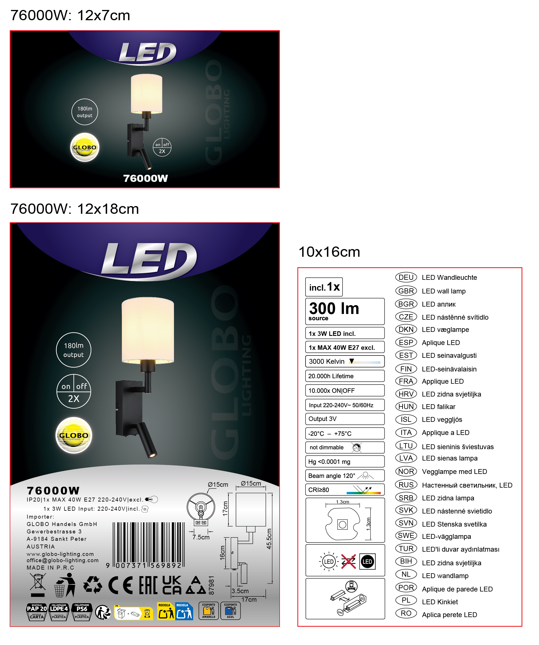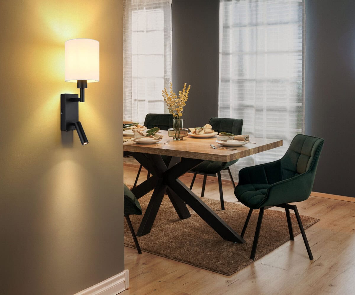 Zidna lampa ZAMORA impresionira klasičnim dizajnom i promišljenom funkcionalnošću—savršena za spavaće sobe, hodnike ili ugodne kutke za čitanje. Njegovo mat crno metalno tijelo u kombinaciji sa bijelom nijansom od tkanine stvara bezvremenski i elegantan izgled. Svjetlo lagano sija prema gore, stvarajući toplu i privlačnu atmosferu. Dodatno, usmjereni LED reflektor integriran je prema dolje – idealno za čitanje ili fokusiran rad. Oba izvora svjetlosti mogu se upravljati neovisno preko dva prekidača na klapnu – što omogućava potpunu fleksibilnost. Sa širinom od 150 mm i projekcijom od 170 mm, ZAMORA je kompaktna, ali svestrana. Bijelo sjenilo podržava sijalicu E27 (nije uključena), omogućavajući personalizirano osvjetljenje. LED reflektor pruža fleksibilnu orijentaciju i energetski efikasno osvjetljenje. ZAMORA spaja tradicionalni dizajn sa modernom funkcionalnošću — moderan i praktičan dodatak svakom zidu.